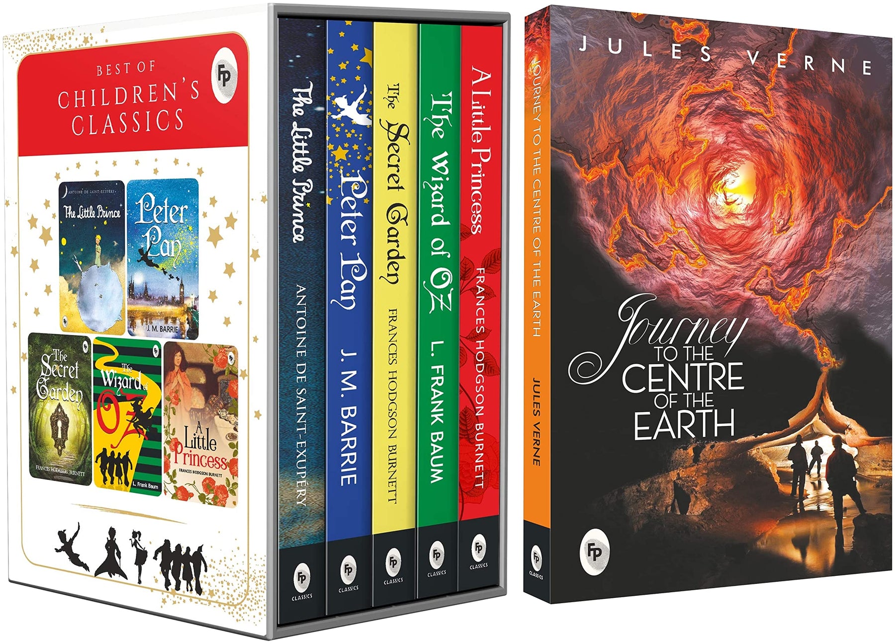 Discover a captivating collection of the five best works in children's literature, presented in a beautifully designed box set that is both a treasure for your library and an ideal gift. Join a young boy in a Sahara Desert crash landing, soar to Neverland with Peter Pan, explore the enchanting secret garden with Mary, journey to the magical city of Emeralds and encounter the Wizard of Oz, and befriend Sara, the imaginative little princess. These delightful and enthralling tales of adventure have stood the test of time, remaining beloved favorites that ignite the imagination and capture the hearts of readers of all ages.