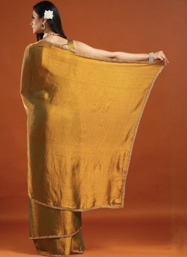 Gold-Toned Chanderi Poly Silk Saree – Product Specifications